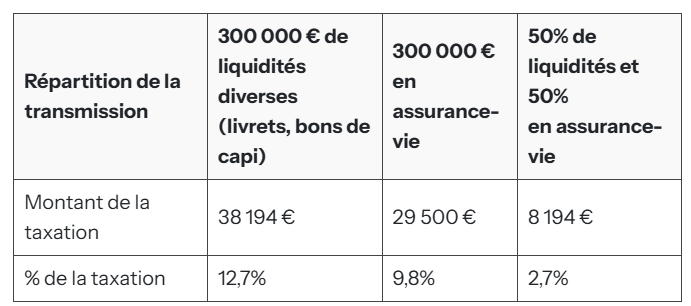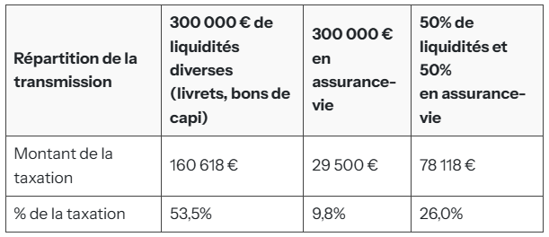 Prenons l’exemple d’une veuve, dont le patrimoine s’élève à 300 000 € et dont l’unique héritière est sa fille.